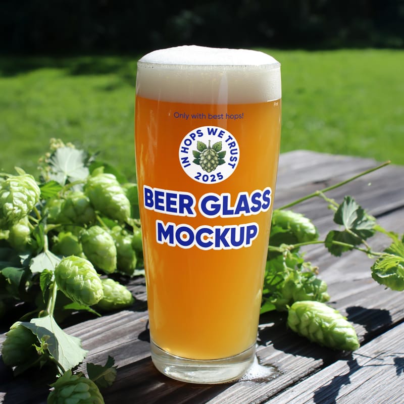 Free Beer Pint with Hops Mockup PSD
