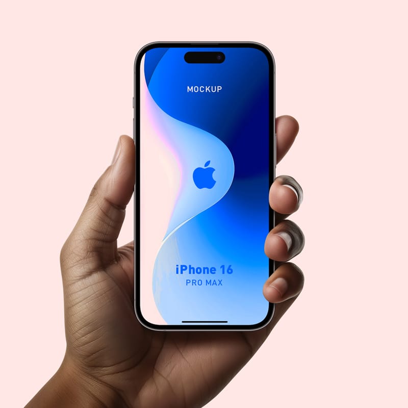 Free Hand Holding iPhone 16 Pro Max Mockup PSD