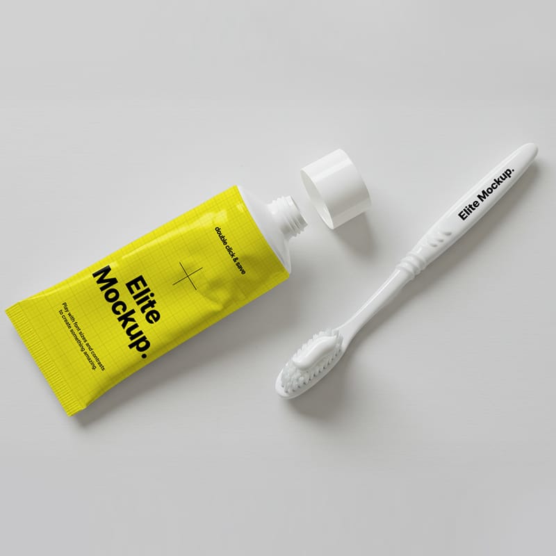 Free Toothpaste Tube and Toothbrush Mockup PSD